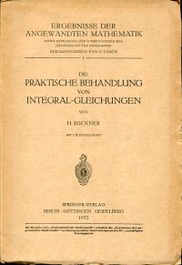 Bückner, Hans: Die praktische Behandlung von Integral-Gleichungen. Berlin: Springer 1952. 8°. VI, 127 S., 1 Textabbildung, broschiert (Besitzervermerk auf Titelblatt; Einband mit leichten Randläsuren) (=Ergebnisse der angewandten Mathematik ; 1)