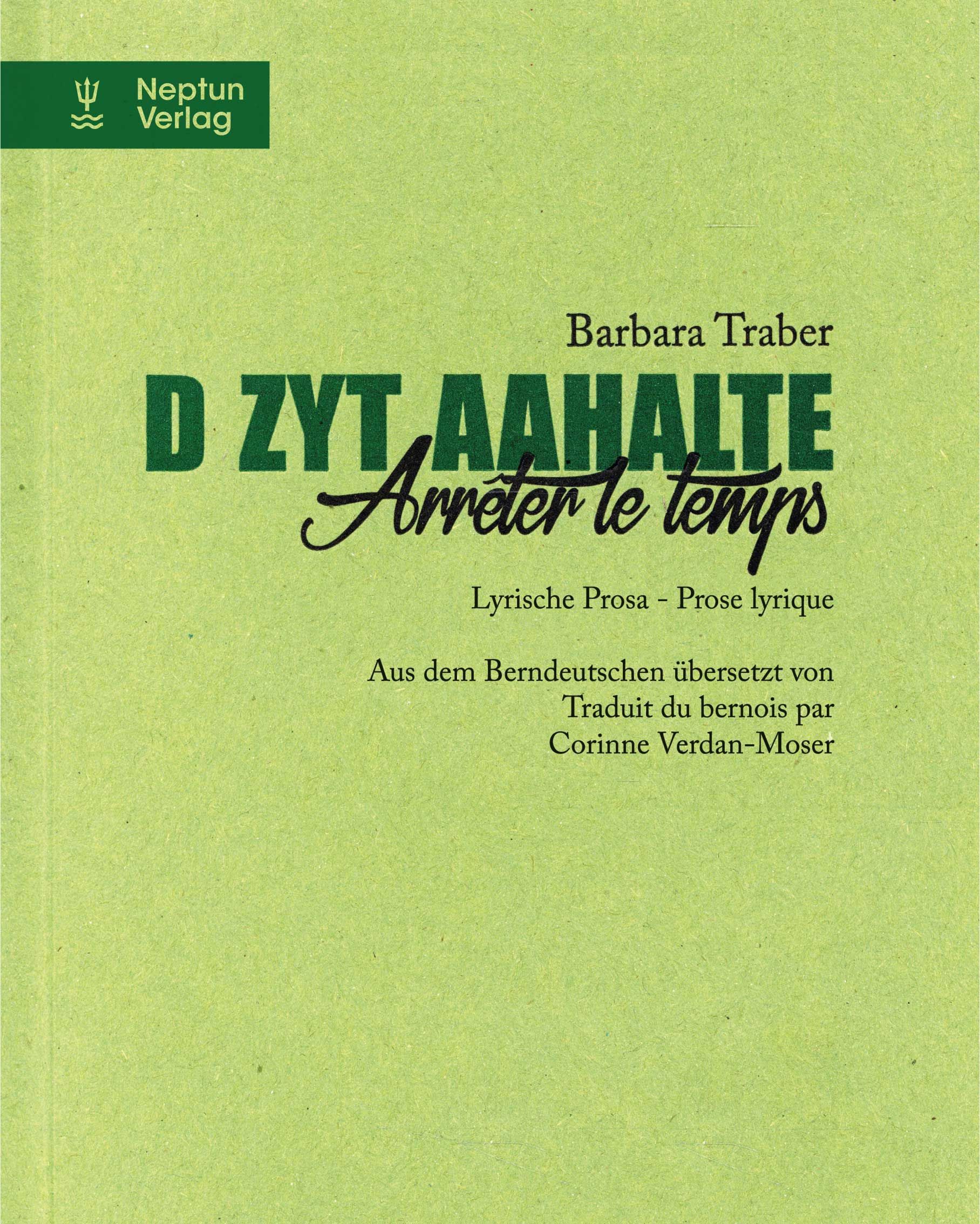 Traber, Barbara: D Zyt ahaalte – Arrêter le temps Lyrische Prosa – Prose lyrique. Aus dem Berndeutschen übersetzt von – Traduit du bernois par Corinne Verdan-Moser Erweiterte Neuausgabe. Bern: Neptun 2024 100 Seiten, Klappenbroschur