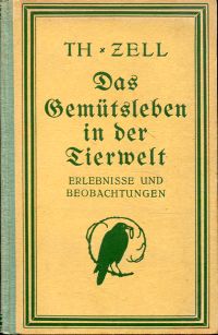 Zell, Th. (d. i. Leopold Bauke): Das Gemütsleben in der Tierwelt. Beobachtungen und Erlebnisse. 4.-6. Tsd. Dresden: Carl Reissner 1923. 8°. 208 S., Halbleinen mit Kopfgrünschnitt (Einband leicht angestaubt; sonst gut erhalten) (=Das Leben der Tiere in Einzeldarstellungen) Text in Fraktur.