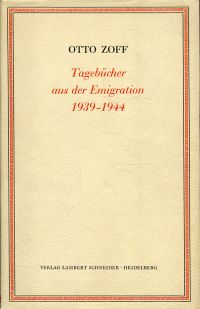 Zoff, Otto: Tagebücher aus der Emigration. (1939 – 1944). Mit einem Nachwort von Hermann Kesten. Heidelberg: Schneider 1968. 293 S., Leinen (Schutzumschlag leicht angestaunt; gut erhalten) (=Veröffentlichungen der Deutschen Akademie für Sprache und Dichtung, Darmstadt, 41)
