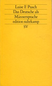 Pusch, Luise F.: Das Deutsche als Männersprache. Aufsätze und Glossen zur feministischen Linguistik. [7. Aufl.]. Frankfurt/Main: Suhrkamp 1989. 201 S., broschiert (Papier leicht gebräunt; gut erhalten) (=Edition Suhrkamp, 1217 = N.F., Bd. 217)