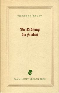 Bovet, Theodor: Die Ordnung der Freiheit. Eine anthropologische Betrachtung über Kunst und Technik in der Gemeinschaft. Bern: Haupt 1951. 8°. 272 S., Leinen mit Kopffarbschnitt (Schutzumschlag leicht angestaubt; gut erhalten) (=Der Mensch und seine Ordnung, 5)