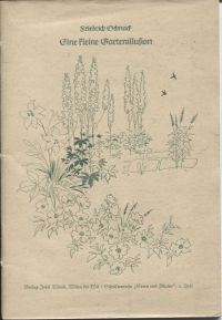 Schnack, Friedrich: Eine kleine Gartenillusion. Gedichte u. Prosa. Wilen bei Wil: Wiesli 1948. 8°. 22 S., Illustrationen, geheftet mit Kordel (Besitzervermerk auf Vorsatz; Ex Libris auf Innendeckel; Schutzumschlag leicht angestaubt; feine Bleistiftanstreichungen) (=Stern und Blume ; 2)