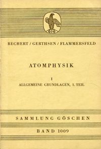 Bechert, Karl: Atomphysik. Mischauflagen. (4. durchgesehene oder umgearbeitete Auflage.) 4 Bände. Berlin: W. de Gruyter 1959-1963. Kl.-8°. 124, 31 S., 35 Abbildungen; 112, 31 S., 47 Abbildungen; 147, 24 S., 16 Abbildungen; 170, 31 S., 14 Abbildungen, broschiert (Papierbedingt leicht gebräunt; Umschlag leicht angestaubt; gut erhalten) (=Sammlung Göschen, Bd. 1009, 1033, 1123/1123a, 1165/1165a)