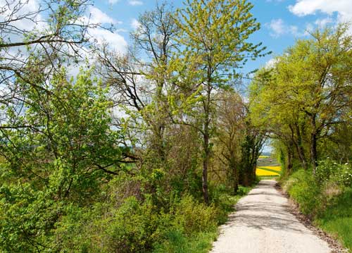 bildreich karten PK 1035: herzhell. Querformat. (Weg, Raps, Wald, Ziel) Mindestbestellmenge: 15 Karten (auch assortiert).
