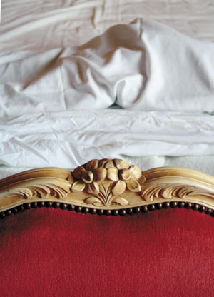 bildreich karten PK 104: bett VI. Hochformat. 2004. (Bett, Bettwäsche, Bettlaken, Matratze) Mindestbestellmenge: 15 Karten (auch assortiert).