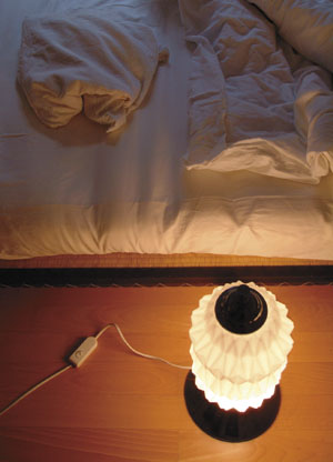 bildreich karten PK 105: bett VII. Hochformat. 2004. (Bett, Bettwäsche, Bettlaken, Matratze, Lampe, Leuchte) Mindestbestellmenge: 15 Karten (auch assortiert).