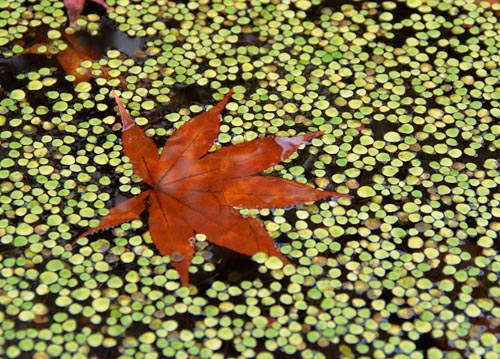 bildreich karten PK 1100: in wasserlinsen. Querformat. (Ahorn, Blatt, Ahornblatt, Wasserlinsen) Mindestbestellmenge: 15 Karten (auch assortiert).