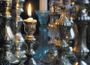 bildreich karten PK 368: valentinas kerzen I. Querformat. (Kerzen, Kerzenständer, Bauernsilber, Silber) Mindestbestellmenge: 15 Karten (auch assortiert).