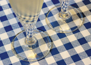 bildreich karten PK 386: al piccolo mondo. Querformat. (Sekt, Prosecco, Tischtuch, Glas, Gläser, Paar) Mindestbestellmenge: 15 Karten (auch assortiert).