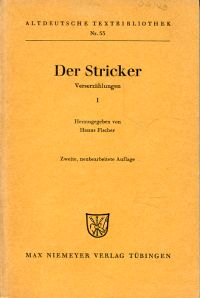 Fischer, Hanns (Hrsg.): Der Stricker. Verserzählungen I. 2. neubearb. Auflage. Tübingen: Niemeyer 1967. 160 S. Broschiert (Name auf Vorsatz; etwas angestaubt) (=Althochdeutsche Textbibliothek; 53)