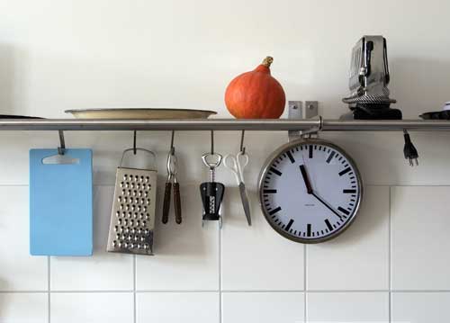 bildreich karten PK 839: kürbiszeit. Querformat. (Küche, Uhr, Zeit, Kürbis, Toaster, Utensilien, Raffel, Reibe, Kacheln) Mindestbestellmenge: 15 Karten (auch assortiert).