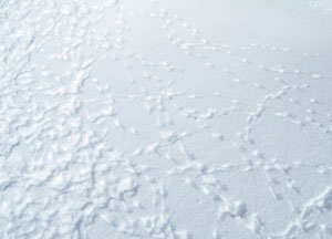 bildreich karten PK 73: spur III. Querformat. 2004. (Schnee, Schneeverwehung, Wind, Spur, Alpen, Muster, Vogel, Vögel) Mindestbestellmenge: 15 Karten (auch assortiert).