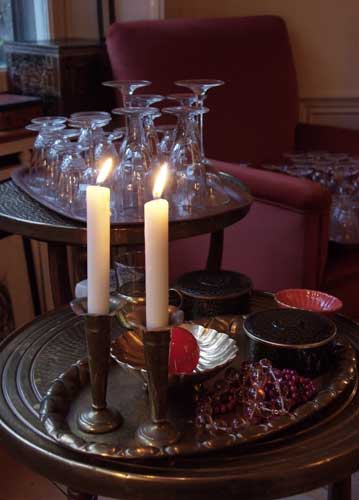 bildreich karten PK 773: vor dem weihnachtsmahl. Hochformat. (Kerzen, Kerzenständer, Leuchter, Advent, Einladung, Gläser, Abend, Wohnzimmer, Sessel, Tisch, Erker, Heiligberg, Paar) Mindestbestellmenge: 15 Karten (auch assortiert).