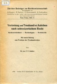 Gubler, Friedrich T.: Vertretung und Treuhand bei Anleihen nach schweizerischem Recht. Rechtswirklichkeit, Rechtsdogma, Rechtskritik. Mit einem Beitrag zum Problem des Treuhandrechtes. Aarau: Sauerländer 1940. Gr.-8°. XX, 203 S., broschiert (Bibliotheksexemplar; angebräunt; sonst gut erhalten) (=Zürcher Beiträge zur Rechtswissenschaft, Neue Folge, Heft 71)