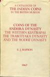 | 1760AB Rapson, Edward James/Allan, J.: Catalogue of the Andhra Dynasty, the Western Ksatrapas, the Traikutaka Dynasty and the „Bodhi“ Dynasty. Reprint der 1. Ausgabe 1908. London: British Museum 1967. 8°. CCVIII, 286 S., 1 mehrfach gefaltete Karte, 21 Taf., Index, Leinen (Schutzumschlag wenig abgegriffen und mit Randläsuren; Buchblock geknickt; Einband leicht befleckt; sonst gut erhalten) (=A Catalogue of the Indian Coins in the British Museum; 1)